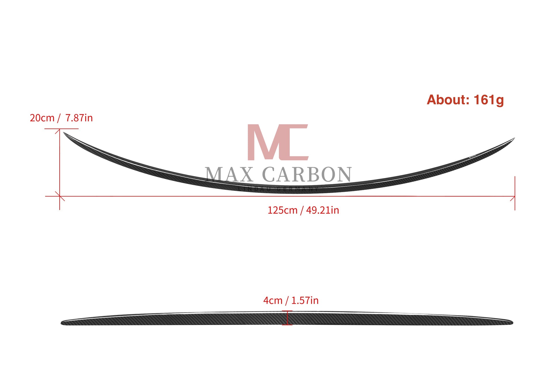 Material: High-quality carbon fiber from Japan, weight approx. 161g/345g including plastic fastening, clear varnish and UV protection. Very good fit.